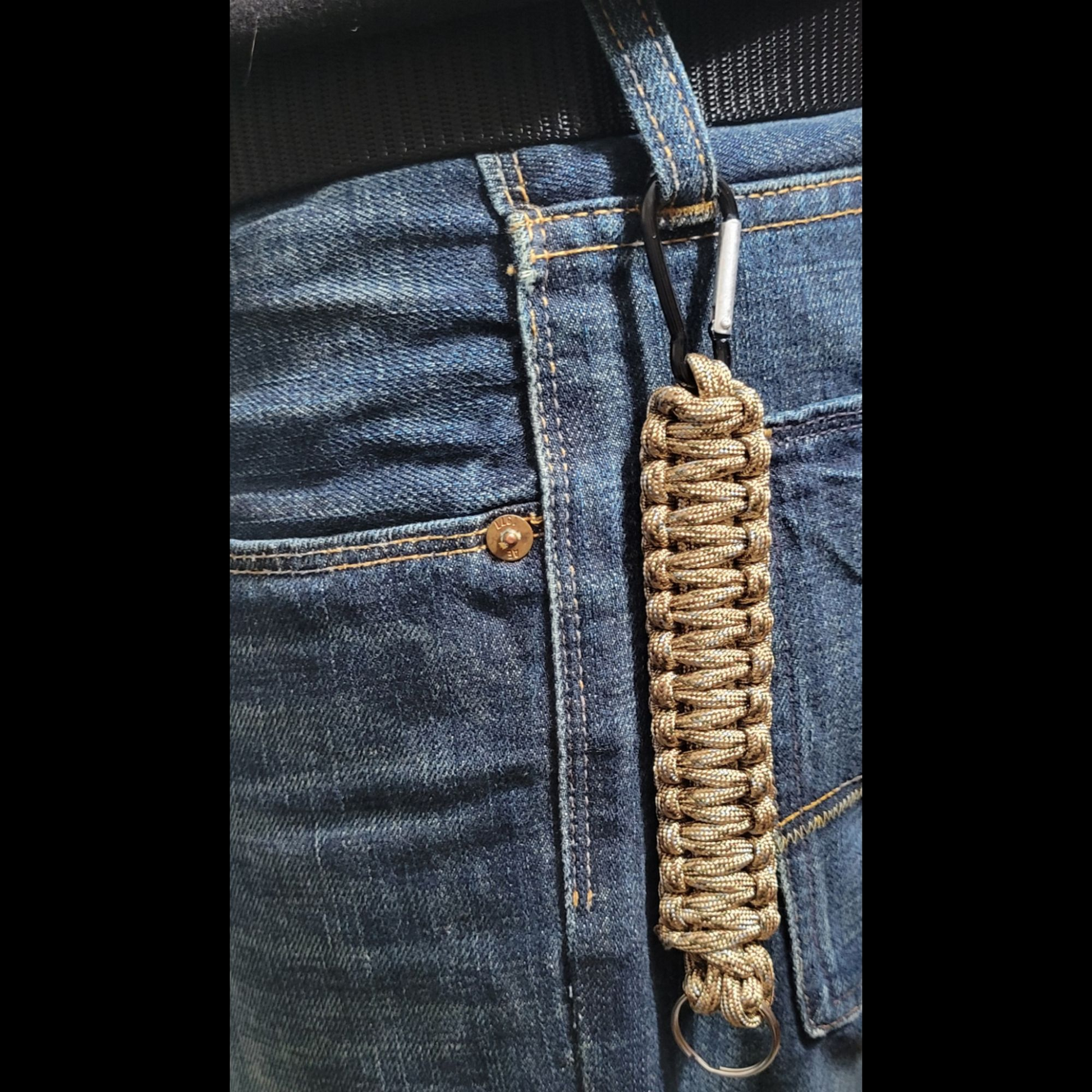 Rugged key ring handcrafted from 10 ft of durable 550 paracord, measuring 8" in length, ensures your keys are always within reach.